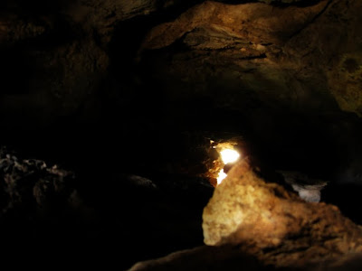 Oh wow, it goes all the way through the hill! I wonder if I can crawl through it...