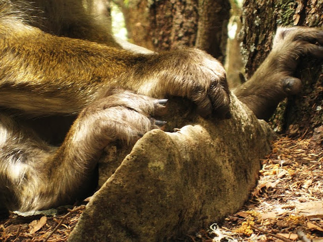 A large part of the Scarlet group home range sits right on top of an area the Berber shepherds herd their sheep through daily. In the beginning, I think I mistook their innate shyness for resentment (likewise, no doubt). But by now, my Arabic has gotten decent enough to make small talk, and in recent months, during the long days of searching on my own, I've been going out of my way to run into them and have a chat (and not only because they sometimes have seen the monkeys). They have always been eager to help us out, and are always curious about what the hell we do all day. Alas, the conversation normally runs beyond my skill range, and they start throwing in Tamazigh words, and their sheep start moving off, so we part ways, me normally in the direction they've pointed me in, and with a little boost of energy from the much needed social contact. Unfortunately my plans to photograph some of the normal guys were foiled by the Scarlet's ranging patterns today, so the only photo I managed to grab was out the car window on the way home:
