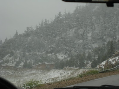 Rain in town, snow at the field site (we drove past it). Common in February, but in May it's just weird.